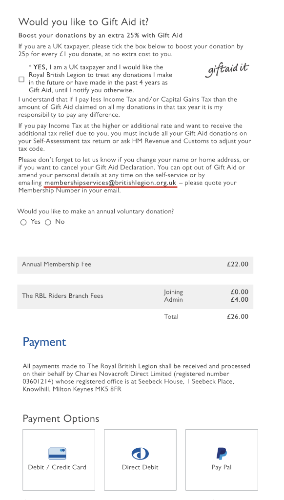 If you need further assistance you can download our excellent “how to join us” leaflet below, follow the instructions on the accordion below or phone the British Legion and ask for help. The RBL helpline is on 0800 3077773